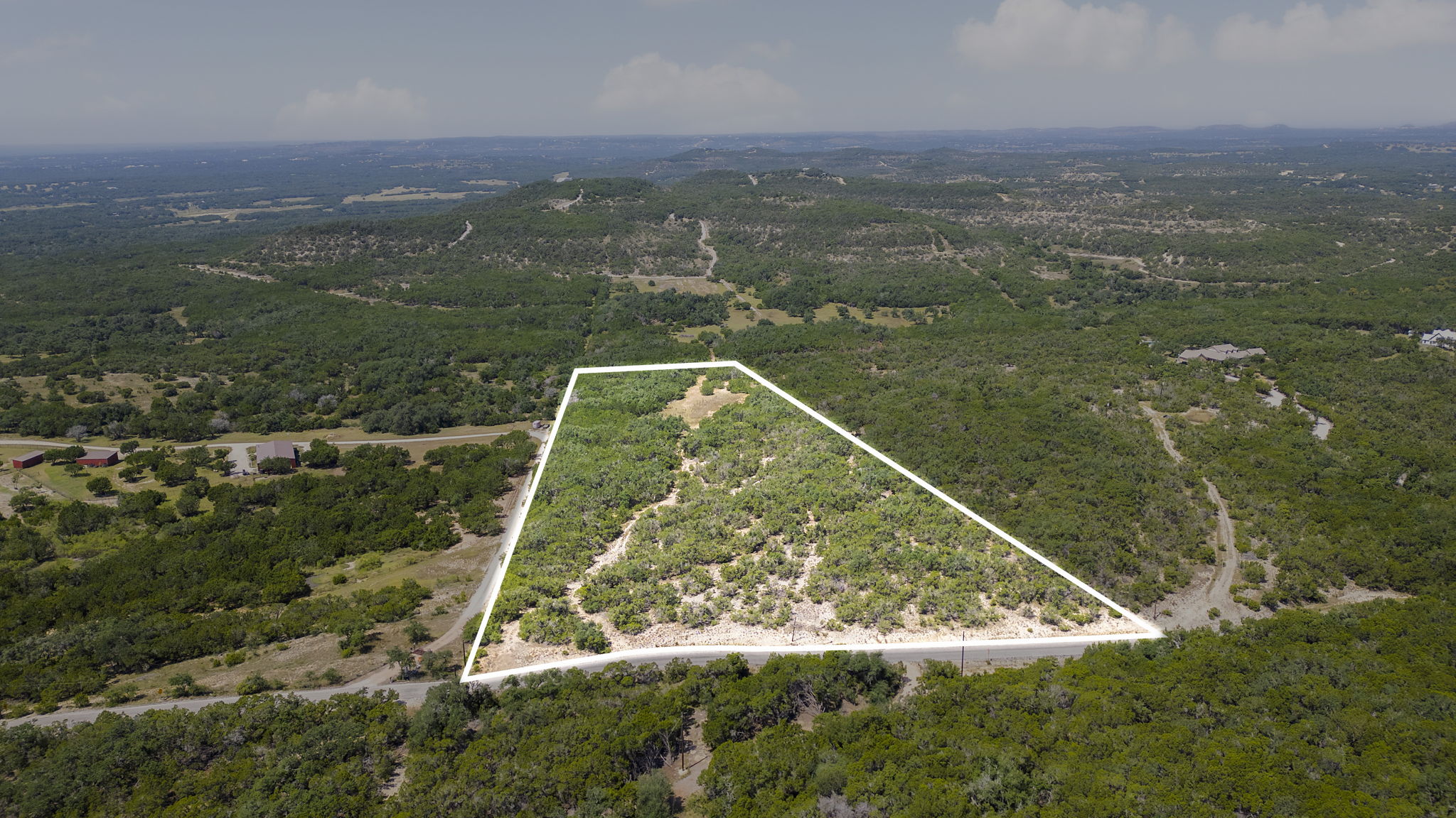 Nearly 11 acres of Texas Hill Country beauty, this property is the kind of place where dreams take root. A natural plateau crowns the land, offering wide-open views that stretch for miles, while the valley below provides a more intimate setting with its own scenic charm. Scattered oaks stand proudly across the property, giving character and shade, and two rough-cut roads make it easy to wander and imagine where your home might sit.