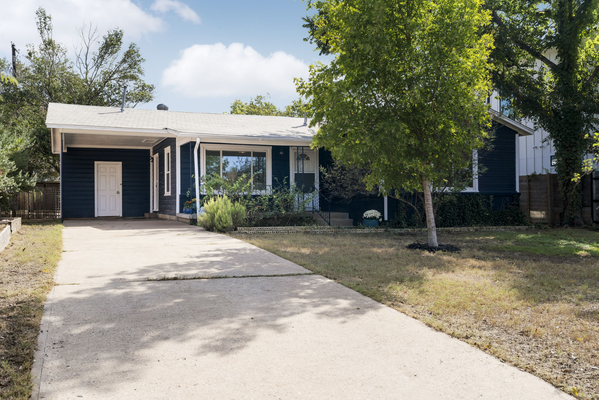 Just off St. Elmo in one of Austin’s favorite zip codes, this mid-century home captures the spirit of 78745 with the best of old and new. You’re only .8 miles from Austin Winery, Still Austin Whiskey, The Yard, and St. Elmo Brewing, plus only four miles from downtown. The exterior keeps its original character; brick and wood siding, mature trees, and that classic curb appeal. Inside, hardwood floors run throughout, paired with light, neutral walls and natural light that fills every corner. The living room feels grounded and comfortable, an easy place to unwind or gather with friends. The kitchen renovation gave it new life with white cabinetry, quartz counters, three tiled walls, and stainless appliances that tie it all together in a clean, timeless way. Down the hall, three well-sized bedrooms continue the hardwood floors, keeping the home cohesive and easy to maintain. The bathroom remodel kept things simple and well done, with updated tile and modern finishes. Out back, the covered patio overlooks a huge fenced yard, plenty of space for a garden, a fire pit, or an outdoor dining setup. The separate ADU adds versatility for guests, an office, or a workout room, giving this property even more to love. In a neighborhood where everything is close and creativity is around every corner, this home stands out for keeping its mid-century character while offering the updates that make it ready for what’s next.