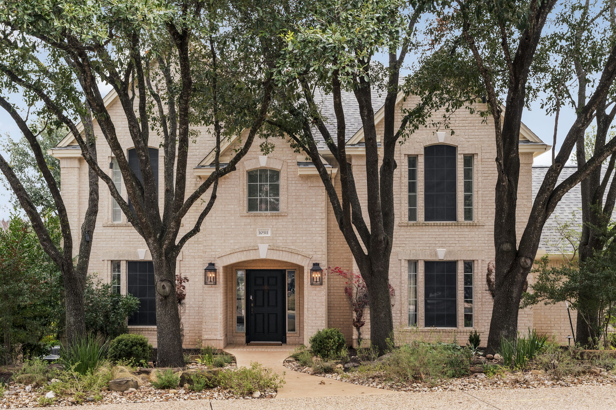 Great Hills, beautifully maintained two-story home with 4 bedrooms, 2.5 bathrooms, on a cul-de-sac, offering tree-filled surroundings and move-in ready living in 78759. This Great Hills home sits on a quiet street with mature trees wrapping both the front and backyard, a long driveway leading to a side-entry 2-car garage, and gorgeous landscaping. Great Hills is known for its established feel, rolling terrain, and easy access to everyday essentials, and this home reflects that balance of privacy and connection. Inside, the layout unfolds with intention. On the right, a formal dining room features a mirrored accent wall and space for a full dining table. On the left, a formal living area wrapped in windows works equally well as a secondary living space, office, or game room. Wood flooring, crown molding, neutral tones, and natural light run throughout the main level. The open living room anchors the back of the home, with a fireplace and walls of windows overlooking the backyard. It flows directly into the kitchen, where 2 breakfast bars create easy gathering space. The kitchen includes a stainless gas cooktop, built-in oven and microwave, and generous cabinetry. Just beyond, a picturesque breakfast area features a window seat framed by built-in bookshelves, bringing the outdoors in. At the top of the stairs, a dedicated office with built-in shelving provides a true work-from-home setup. The primary suite offers large windows and enough room for a full king-size furniture layout, plus space for a desk or workout area. The ensuite bath includes a dual vanity, a standalone soaking tub, a walk-in shower, and a walk-in closet. Out back, an elevated deck offers room for seating, grilling, and relaxing under the trees. Stairs lead down to a park-like backyard filled with lush foliage and mature trees. Located in Great Hills and zoned to Westwood HS, this home offers easy access to Highway 183, is less than 2 miles to HEB, and approximately 21 miles to the Austin airport.