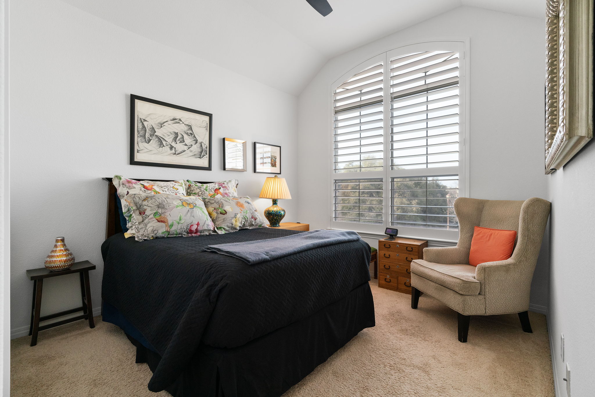 Lovely two-story condo located in the desirable Avery Ranch community. This home offers an elegant design with high ceilings, graceful archways and columns, recessed lighting, and a charming stone fireplace at its core. The kitchen rests in the heart of the home, featuring granite countertops and Whirlpool stainless steel appliances, including a gas cooktop, and conveniently overlooks the cozy living and dining rooms. You’ll enjoy generous natural light throughout the home with expansive windows and brand-new wood shutters! Upstairs, you'll find a versatile secondary living area, perfect for use as a game room, additional living space, playroom, or home office—tailor it to fit your needs! The primary suite is thoughtfully situated for privacy, featuring a vaulted ceiling, ample natural light from multiple windows, a large walk-in closet with shelving, and an ensuite bathroom with dual vanities, a walk-in shower, and a separate garden tub for relaxing. This home is ideally positioned just minutes from coveted Avery Ranch amenities, Rutledge Elementary, HEB, Starbucks, Brushy Creek trails, and major thoroughfares like US-183 and TX-45.